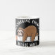 A coffee mug expressing tiredness with the image of a sloth requesting to recharge energy.