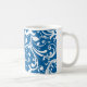 This ceramic coffee mug is shown with a lovely blue and white swirl print design.