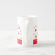 Hearts float above a red bar with text reading, "Happy 2nd Anniversary". Just above the hearts, you'll find the names of the celebrating couple. Though the 2nd Anniversary is traditionally the "cotton" anniversary, the more modern take is that it's the "china" anniversary, making this bone china mug an excellent gift idea for this auspicious occasion.