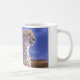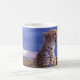 This ceramic coffee mug is shown with a photo print of a beautiful cheetah.