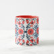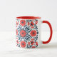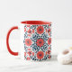 mug with an illustration of a decorative design in the shape of flowers on a background of a magnificent orange and white color