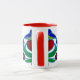Coffee Mug - PA Dutch Distelfink design. The distelfink is a mythical bird found in the art work in the PA Dutch area of Lancaster County, PA My original design is in bright colors of red, blue and green and the rim and handle are a bright red. There is a teapot and pitcher in the same design that is available.