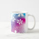 This ceramic coffee mug is shown with a pretty tropical floral print design.