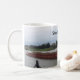 Coffee mug with boat and barge in Houston Ship Channel saying stay the course.