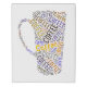 Word art design features silhouette of coffee mug filled with the word "coffee" in a variety of colors and fonts