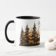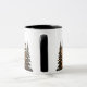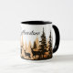 This ceramic coffee mug is shown with a art print of deer in the forest with Yellowstone text.