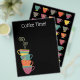 Coffee shop or chai shop menu flyer. Colorful porcelain tea cups/coffee mugs. Customizable text and free space.