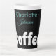 Stylish latte mug with “Coffee” and the name “Charlotte Johnson” in teal typography on a black background. You can simply personalize it by adding your name. Coffee not your drink? Change it easily using the personalize this text box. If you want to change the color or font, check out the design editing tool for more options! Enjoy your coffee in style! It also makes a great gift idea for coffee lovers! If you need help with personalization, matching products or for a custom design contact me via zazzle chat or email: ursuladawnmoon@gmail.com