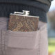 I have to confess, I'm living vicariously with this new word cloud design...I LOVE coffee but have a caffeine allergy so please, enjoy it for me. Some of the words found in this cool flask design are: brew, grind, aroma, mocha, latte, au lait and many other types of coffee or words related to coffee....and if that isn't what's in your flask, we won't tell. This version is shades of caramel and Indian red on a dark chestnut brown, burlap textured-effect background. Search ID283 to see additional color options and matching products with this design.