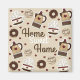 "Home sweet Home" magnet with cute illustrated steaming cup of coffee and matching coffee pot decorated with hearts and doughnuts.