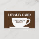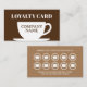 Coffee shop loyalty / punch card template for cafe. Custom company reward card design for cafe, restaurant, diner and other places. Customizable beige and brown colors. Space for 10 stamps / punch holes. Offer return clients and customers a discount or free order like a cup of coffee or other drinks. Two sided print with silhouette of cup and saucer.