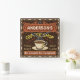 This coffee-themed square wall clock is perfect for anyone who runs their own coffee shop or has a coffee theme in their home kitchen decor. Done in retro brown, orange, beige and yellow, this espresso / cappuccino inspired design features a cup on a saucer, two personalized text banners and the words "Coffee Shop / Fresh Roast / Great Flavor" in yellow.