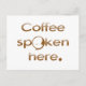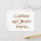 Wear your caffeine addiction with pride! Design proclaims "Coffee spoken here" with a big coffee ring in the middle of it. Mocha, java, latte, espresso, cappuccino - no matter what you call it, you speak the language! Perfect for use at the coffee shop, dorm, or TV couch.