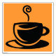 Square wall decal with black image of cup and saucer. Background colour maybe changed to your décor.