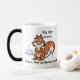This nice mug has a cartoon clipart of a squirrel and a cup of coffee on both sides with the words: "My day starts when the caffeine starts." An amusing design for coffee lovers. Makes a nice gift.