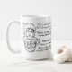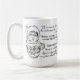 Mug with famous quotes about coffee and tea and a self-portrait illustration by Jean Fogelberg.