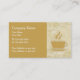 Coffee theme business card with beautiful fresh cup of coffee image, floral flourish background, and background color and text you can easily customize now. Best business cards for a coffee shop, coffee service, or coffee supplies and supplier.