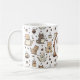 This adorable white ceramic mug is the perfect gift for any cat and coffee enthusiast! It features a delightful repeating pattern of cute, cartoon cats enjoying various coffee drinks, surrounded by coffee beans and cups. The design includes a central circular banner with the warm brown text, "Coffee Time." Ideal for enjoying your morning brew, afternoon tea, or late-night hot cocoa. Its whimsical charm will bring a smile to any cat lover's face.