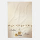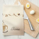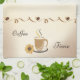 Coffee time kitchen towel with a picture of a coffee cup and a daisy.