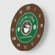 Coffee time large wall clock for kitchen, cafe, cafeteria, restaurant, company, office or shop. Brown and green colors. Custom color background big roman numerals wall clock. Latin numbered dial face. Personalize with your own funny quote, saying, monogram letters or name. Make your own home decor accessory. Trendy decorations for caffeine addicts. Beverage / drinking theme. Personalized gifts for barista.