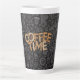Doodles Of Coffee Symbols On Black Background, With The Center Coffee Time.