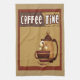Coffee Time tea-towel, perfect dish cloth for your kitchen for use or display. featuring a coffee pot and a steaming cup of latte, tea=towels from Ricaso