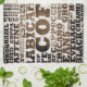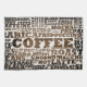 Coffee types such as macchiato, latte, cappucino, etc all listed in a grunge themed background. Ideal for the coffee obsessed!