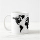 Coffee, travel, sleep repeat quote and world map on a black and white mug with editable art and text colors. Let your wanderlust shine at home and dream about your next trip while using this cute coffee mug at home. Similar coordinating design is available on other types of mugs in the Custom Paper Works Zazzle Designer Shop.