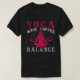 Super cute "coffee wine balance" shirt for yoga lovers and yogis. Perfect gift for all the wine lovers and coffee addicts in your life. Features a woman in lotus sitting yoga pose holding a wine glass and coffee cup in her hands. Funny, comedy, humor shirt.
