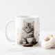 Adorable illustrations of cute kittens with a coffee cup accented with flowers, the text reads: "Mornings are for having coffee with my cat" and this can be changed to anything you like - Each side of the mug has a different kitten illustration - we offer 16 different mugs so you can mix and match creating a cute coordinated set as a lovely gift for a housewarming, Christmas or new kitten in the family.
