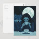 Coffee With the Wolf during a full moon fantasy Postcard