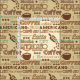 A variety of coffee-related terms on warm, neutral fabric