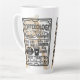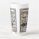 Vintage style sign poster with coffee terms as they relate to living life. Hands holding coffee in background. Linnaea Mallette .