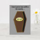 This funny get well soon card features a creepy coffin made from wood with gold edging. The coffin lid is slightly open revealing only darkness within. The gold plaque on the front of the coffin has spooky black text on it that says RIP, giving no clue who or what might be lurking inside. This fun yet sinister coffin is ideal for Halloween. The bleak gray background acts to draw the eye of the observer towards the coffin of doom.There is a funny customizable message on the front of the card and the text inside reads get well soon.