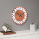 A clock with an attractive and original cogged design. 24 cogs around the edge with an hour and minute scale with nice clear stylish numerals around the inner edge. Available in a variety of different colors. However the background color can also be customized.