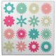 An attractive square arrangement of 16 different style cog wheels in a pallet of attractive colors.