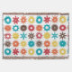 An attractive pattern made up of a repeating square arrangement of 16 different style cog wheels in a pallet of attractive colors.