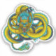 This vibrant image depicts a powerful Chinese dragon coiled in a circular formation. The dragon's scales are a shimmering gold, contrasting beautifully with its bright blue mane and claws. Its eyes are fierce and menacing, and its mouth is open in a terrifying roar. The dragon's body is intricately detailed, with scales, whiskers, and horns adding to its imposing appearance. The overall composition is dynamic and visually striking, capturing the mythical and majestic nature of this legendary creature.