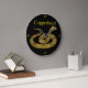 Great price for a very nice product. Arrived a day early - unheard of these days. The outside gold area has a little more orange tone to it than shown in the picture. Great packing so product can't get damaged. I used the same packing to forward the clock to my brother and sister-on-law for the 50th wedding anniversary. Printing was just as expected - lovely!