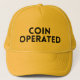COIN OPERATED fun bold ironic statement on trucker hat, typographic and funny, good gift for any prankster, inspired by tv character frank rossitano.