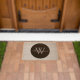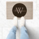 Personalize this fibre doormat with your own monogram and family name right on the product page! Your family name will appear in a light scripted font over a light initial in a classic serif font on a circular black background.