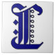 The letter L in Colchester typeface in a medium blue with a slight shadow to give it a three dimensional effect.