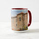 Mug with a picture of the medieval castle of Colchester in Essex, England, United Kingdom. It also has the words "Colchester" (in blue) and "England" (in red). Customizable.