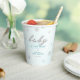 A simple, modern, elegant and chic gender neutral baby shower party personalized paper cup featuring a textured, winter white background, the word BABY covered in rhinestones (not real rhinestones, this is a digital effect) and in modern calligraphy script, modern typography and a few rhinestones covered snowflakes. A chic, timeless design for a future mommy who is celebrating her baby shower in the winter months, November, December or January or even beyond, as long as there is snow!