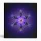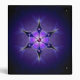 This chilly abstract was created from an Apophysis fractal turned into a six-pointed kaleidoscope. The design is overlaid with a silver-framed snowflake with inlaid deep blue, purple, and lavender set with round soft pink gems and accented with a deep pink jewel in the center. The whole piece gives the effect of a soft, snowy light shining through a the black and midnight blue of a dark winter night.