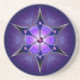 This chilly abstract was created from an Apophysis fractal turned into a six-pointed kaleidoscope. The design is overlaid with a silver-framed snowflake with inlaid deep blue, purple, and lavender set with round soft pink gems and accented with a deep pink jewel in the center. The whole piece gives the effect of a soft, snowy light shining through a the black and midnight blue of a dark winter night.