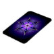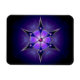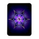 This chilly abstract was created from an Apophysis fractal turned into a six-pointed kaleidoscope. The design is overlaid with a silver-framed snowflake with inlaid deep blue, purple, and lavender set with round soft pink gems and accented with a deep pink jewel in the center. The whole piece gives the effect of a soft, snowy light shining through a the black and midnight blue of a dark winter night.