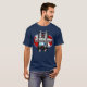 My 11 yo wore adult XL (5’7” 165#). The 8yo is small framed. She wore adult small and tied it in the back. Grandma wore adult large with long sleeve shirt underneath. Tall girl adult medium. Dark haired male adult large. Good quality dark Heather gray, Gildan brand shirt. -it was next up from basic choice and cost about $20 per shirt. Not too thick or thin. Washed and dried well, no major shrinkage. Not see-through. Can wear a bra under it fine. Screen print is just as shown and well done, front and back.