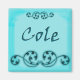 Personalized with the name Cole on a blue background with scroll work.