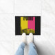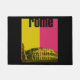 The Coliseum in Rome design contrasts bright, cool and contemporary colors with the historic ruins of the Coliseum in Rome. A graphic image in black of the Roman Coliseum is filled with a bright yellow color. This same bright yellow color forms one of the two stripes that comprise thew background. The second stripe is in a deep but bright pink color. The word rome is displayed in dark letters at the top of the design. If you have a love for Roma, Italy and pop art, then the Coliseum in Rome design is for you!